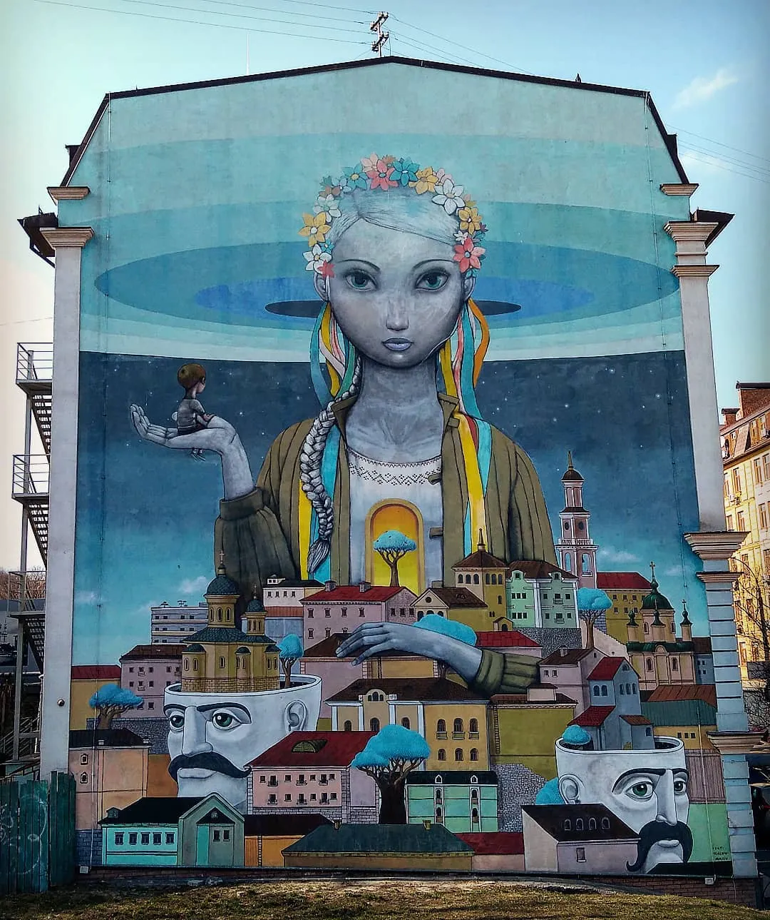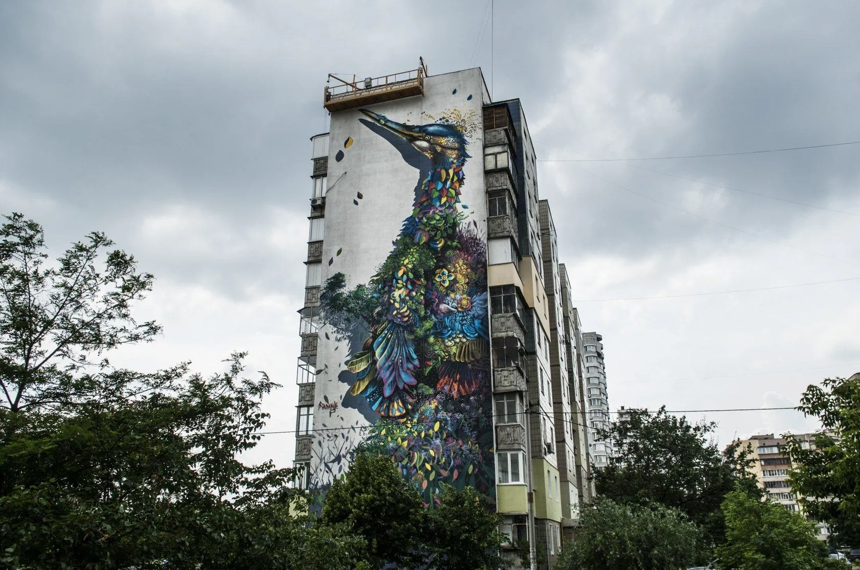Художники з різних куточків світу дарують свої творіння Києву, чимало й українських художників, що перетворюють похмурі стіни на справжні яскраві витвори мистецтва.