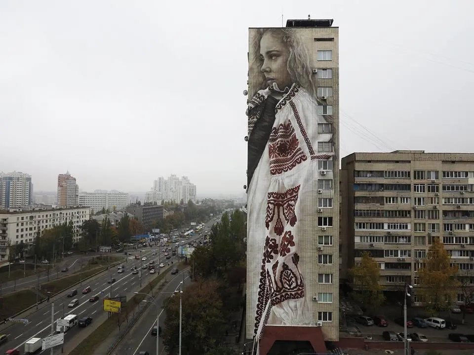 Стінопис присвячений красі українських жінок у жовтні 2015 створив австралійський художник Гвідо Ван Хелтен. На величезному панно зображена дівчина, яка тримає у руках вишиванку. Стріт-арт займає стіну 16-поверхового будинку.