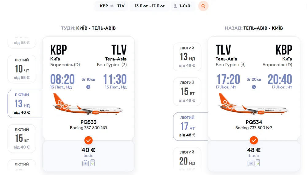 Так, в системі бронювання SkyUp Arilines з'явилися дешеві квитки з України до Тель-Авіва. Полетіти можна із Києва з січня по березень включно. Крім того, є доступні цікаві варіанти із Харкова, Одеси та Львова.