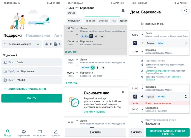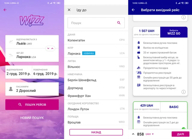 Це два додатки від однойменних компаній-лоукостерів, які повинні бути на ваших смартфонах, і це не обговорюється. Якщо генератори – не ваше, і ви хочете самостійно оглянути ситуацію з цінами та напрямками – сміливо копирсайтеся у програмі. Перевагами цих додатків є: ціни такі, як на сайті.