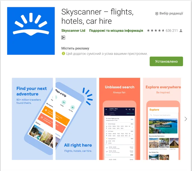 Ще один відмінний додаток, який дозволить за лічені секунди знайти дешеві квитки в ті напрямки, які вас цікавлять. За аналогом з KIWI тут можна як просто вибирати напрямки, так і будувати складні маршрути.