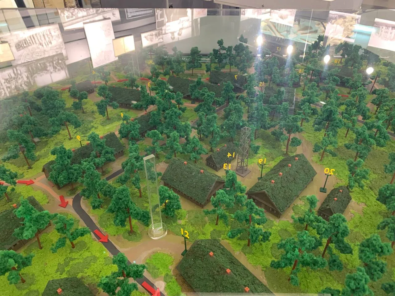 Тут є велика модель бази, того варіанту, який вона мала під час активного використання. Спершу для кращого розуміння потрібно вивчити її, адже всі об'єкти тут підписані і це дозволить потім краще сприймати самі руїни.