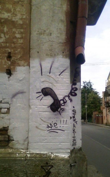 Наприклад, на цьому фото ми можемо побачити, як художник реалізував класну ідею з "продовженням проводу" від телефону.