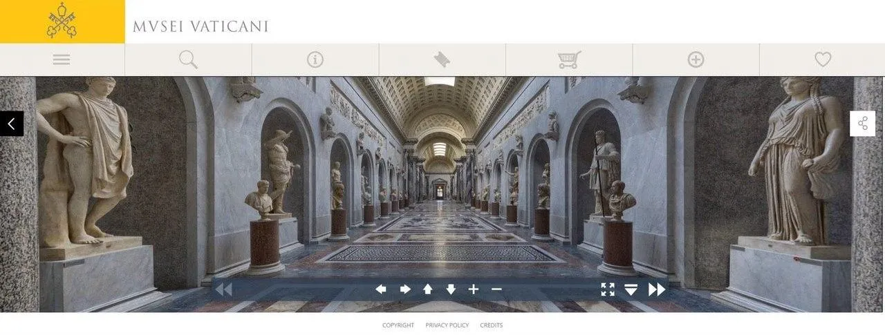 На сайті пропонують 6 віртуальних турів: Музей К'ярамонті, Музей Пія-Климента, Сикстинська капела, Капела Нікколіна, Станці Рафаеля та Нове крило.