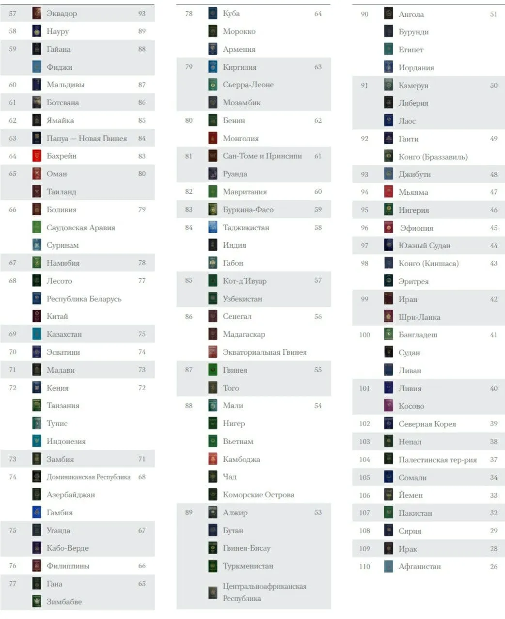 Індекс паспортів Henley & Partners на другий квартал 2021 року / Фото: ru.henleyglobal.com