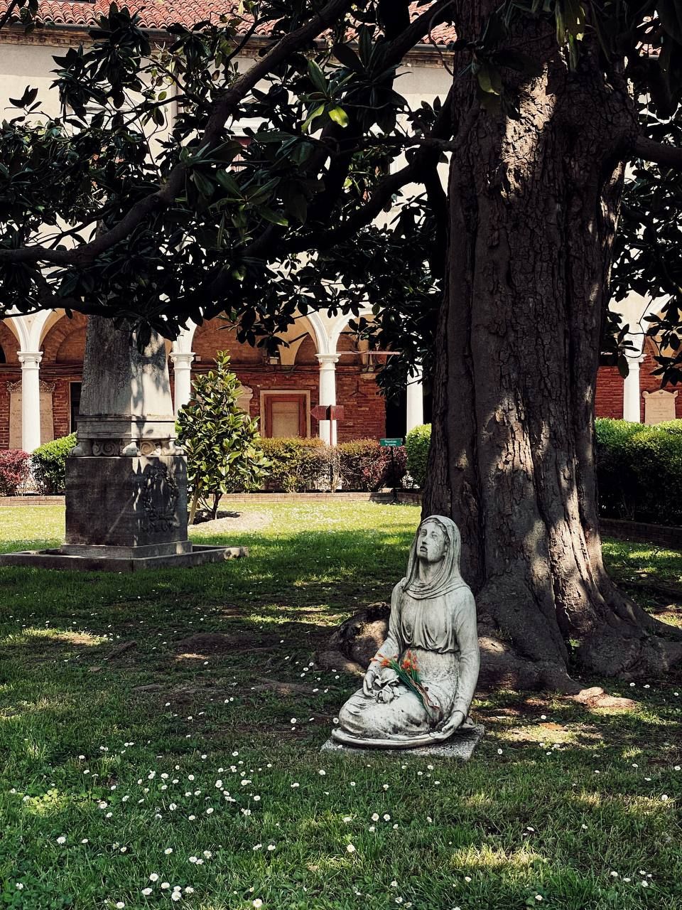 Оскільки повноцінно долучитися до світу Вісконті та Манна наразі неможливо, цього разу я вирушила на Сан-Мікеле. Це маленький острів, розташований між історичним центром Венеції та Мурано. Його часто називають островом мертвих, і цілком заслужено. Раніше у фортеці на острові був монастир, потім – в'язниця, однак у 1807 році за розпорядженням Сан-Мікеле дійсно перетворили в місце для поховання венеційців та головне кладовище міста.