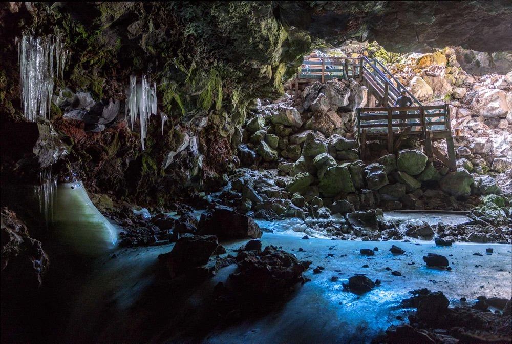 Це місце сформувався близько 10 тисяч років тому під час виверження вулкана, коли потоки лави затверділи зверху, а всередині утворили порожнистий тунель, так звану лавову трубку. Завдяки особливій геологічній будові печера утримує холодне повітря всередині, не пропускаючи тепло ззовні.